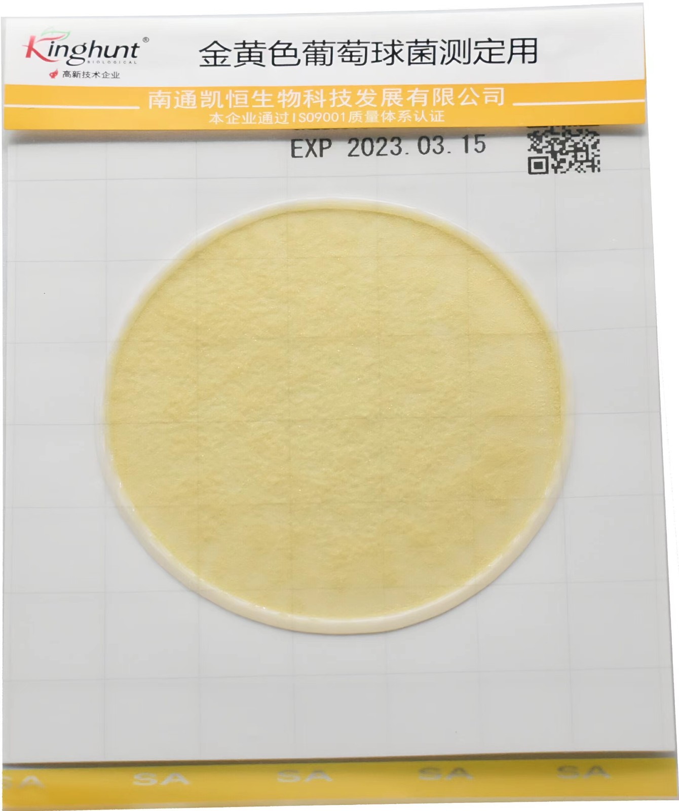 接種后的測試片疊放(不多于15片),36℃±1℃培養(yǎng)24h±1h檢測金黃色葡萄球菌菌群;培養(yǎng)時(shí)注意保濕(于培養(yǎng)箱下層放置一濕盒或其他容器,倒入2L-3L水即可)。