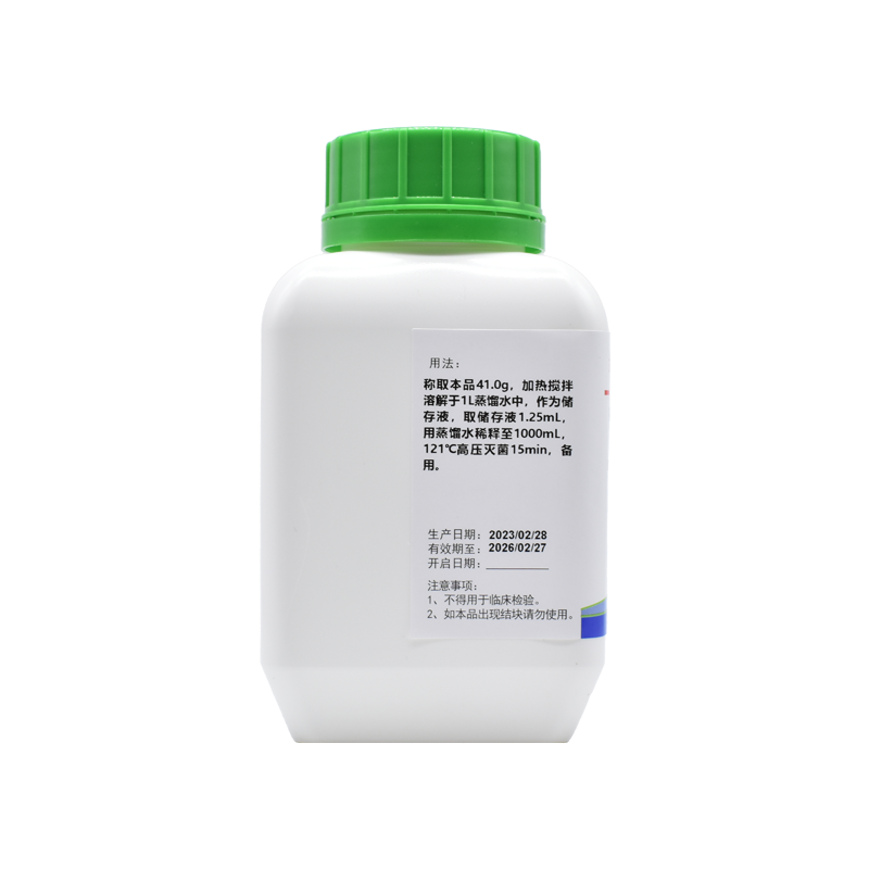 稱取本品41.0g,加熱攪拌溶解于1L蒸餾水中,作為儲存液,取儲存液1.25mL,用蒸餾水稀釋至1000mL,121℃高壓滅菌15min,備用。