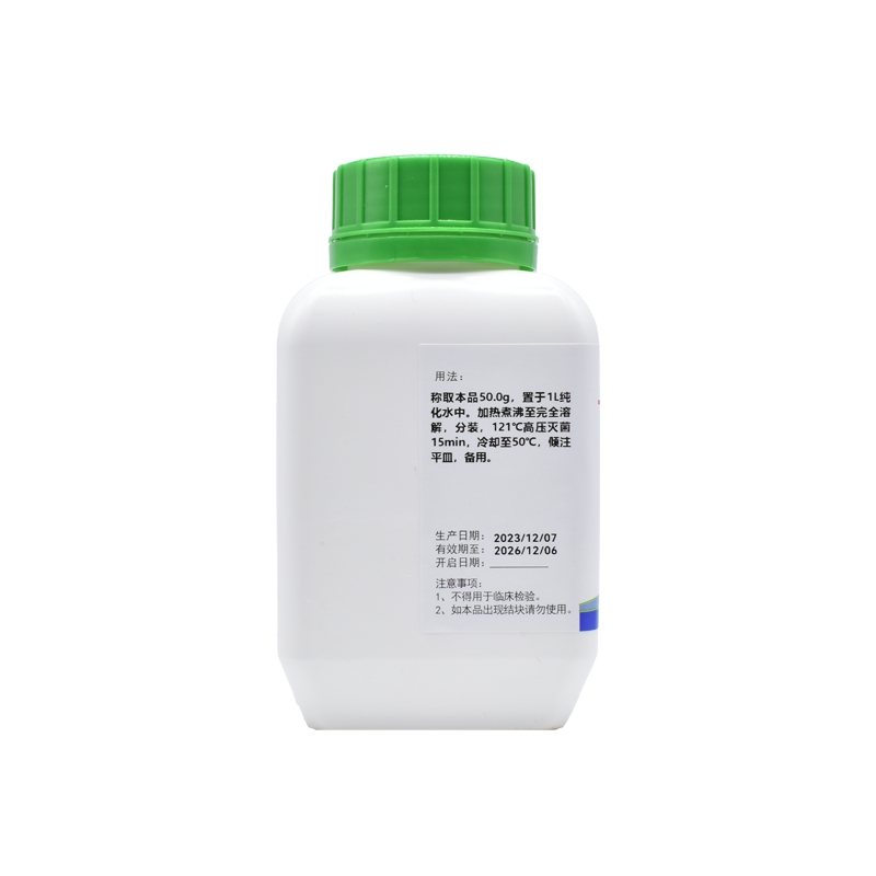 使用方法 | 稱取本品50.0g,置于1L純化水中。加熱攪拌至完全溶解,分裝,121℃高壓滅菌15分鐘,冷卻至50℃,傾注平皿,備用。 | 拆開包裝即可使用 | 拆開包裝后、水浴加熱復(fù)溶后傾注平板使用 |