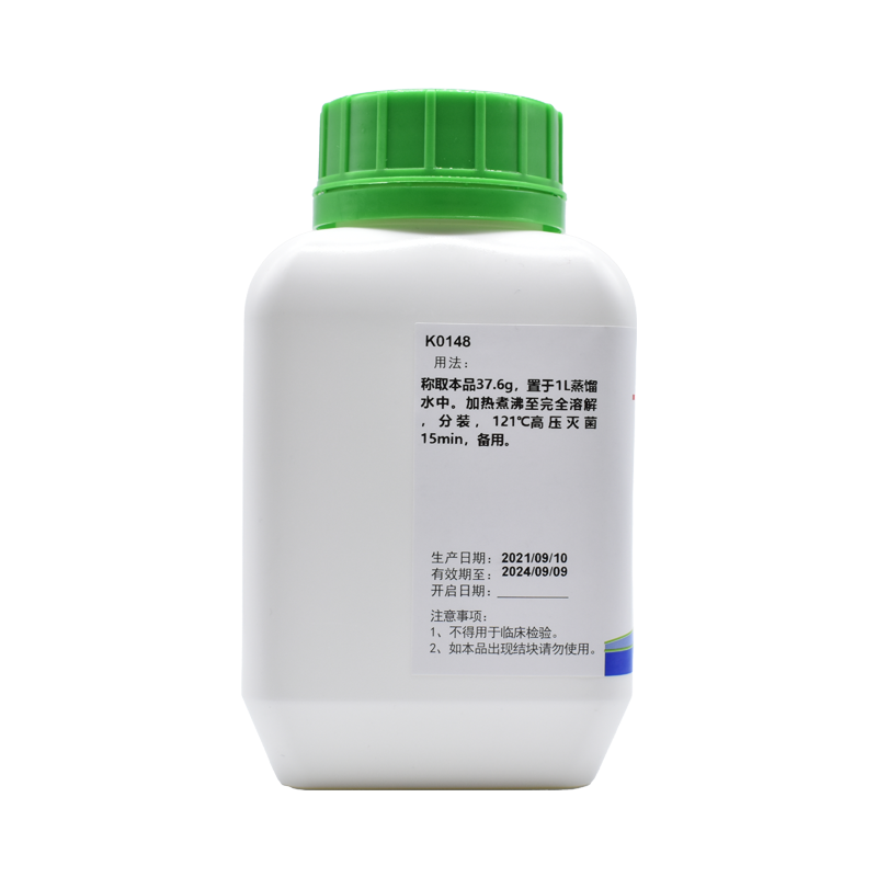 稱取本品37.6g,置于1L蒸餾水中。加熱煮沸至完全溶解,分裝,121℃高壓滅菌15min,備用。